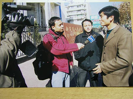 解说:2003年12月19日上午,中国“乙肝歧视第一案”在安徽省芜湖市新芜区人民法院开庭,离开庭尚有一个小时,法院门口就已经聚集了近百名记者和旁听者。当8点40分左右,法庭宣布开庭时,300余名旁听者和媒体记者更是将宽敞的大法庭挤得满满的。